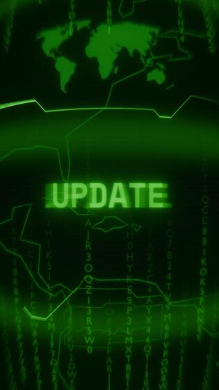 Old green Vertical Retro CRT screen showing text UPDATE appearing in random glitch and Haking style Free Video
