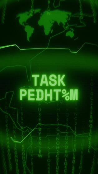 Old green Vertical Retro CRT screen showing text TASK PENDING appearing in random glitch and Haking style Free Video
