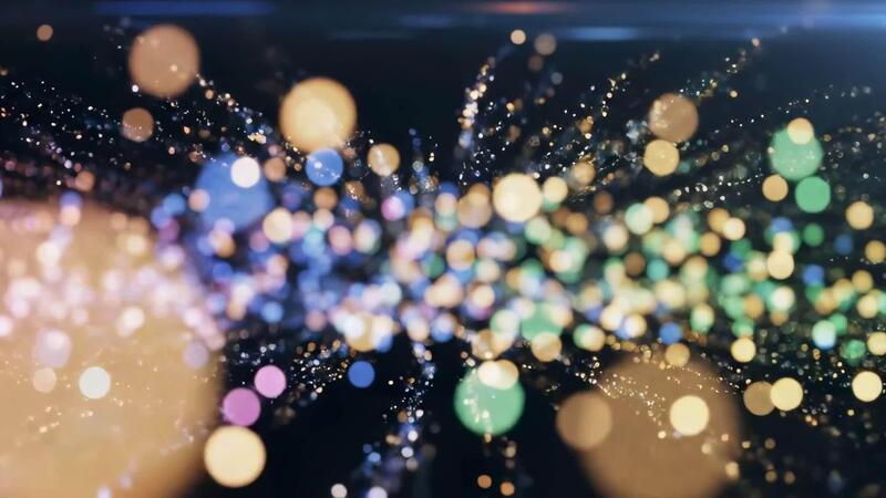 Abstract colorful glittering particles background with beautiful bokeh light effect on dark backdrop. Free Video