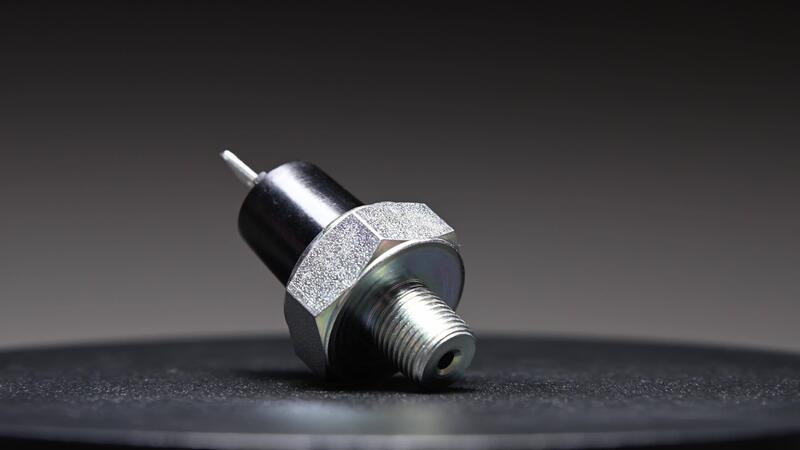 Spare part. New engine oil temperature sensor. Rotating new part against a gradient background. Shallow depth of field. Pro Video