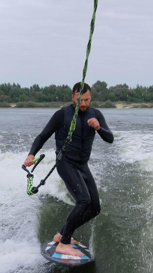 A Thrilling Watersport Experience. A Surfer Riding a Wave with Precision and Skill, Eagerly Navigating the Water with Balance and Control Pro Video