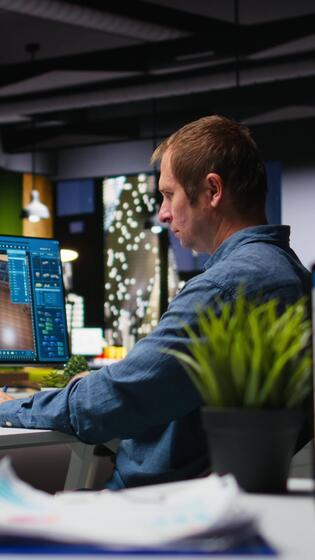 Vertical Expert developer using AI neural networks on 3D modeling program to design a new apartment floor plan, virtual assistant helps with furniture and layout on architectural software. Camera A. Pro Video