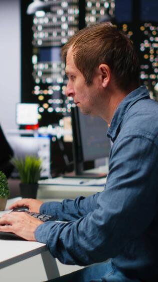 Vertical Male IT engineer uses AI techniques to create game and a turbine, futuristic gaming design for a Mars station project. Sci fi system for a modern game lobby, professional software. Camera B. Pro Video