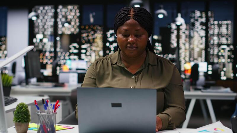 Woman business assistant at office sharing insights and data reports, focusing on budgeting and projections for efficient resource allocation. Successful company administration. Camera B. Pro Video