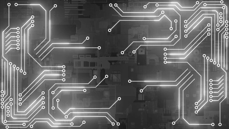White and Black color abstract shapes forming cyberspace glowing circuit board design digital loop able technology background Free Video