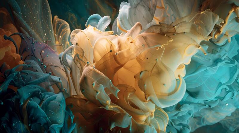 Animation of Fluid Ink Clouds in Slow Motion Forming Aurora Patterns, Cinematic Abstract Background 2 Pro Video