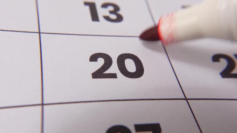 Highlighting date number 20 on a calendar, with a bold red cross mark emphasizing an important reminder or scheduled event. Pro Video