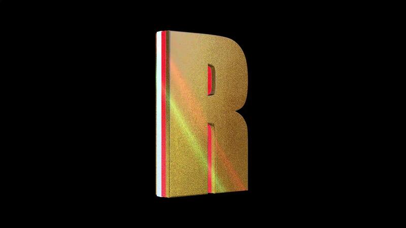Realistic metallic gold 3D letter R rotating smoothly modern animation loop for motion graphics. Pro Video