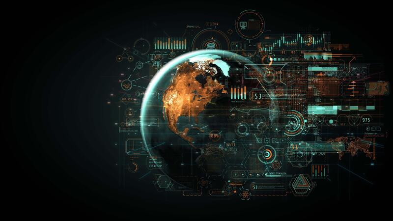 Global Earth technology network displaying digital data interface Pro Video