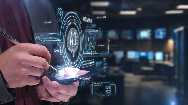 Man using smartphone accessing artificial intelligence chatbot data Pro Video
