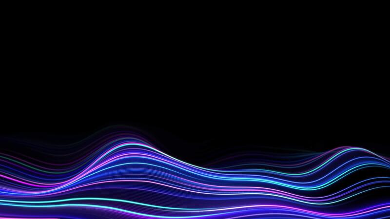 Multicolored wave lines looping on a black background. Light pulses on curved neon lines. Abstract animated background of a multicolored virtual ribbon glowing in the ultraviolet spectrum. Digital Pro Video
