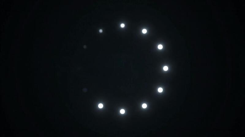 Dynamic loading animation with pulsing light points against black backdrop for technology startup or software company promotional clips Free Video