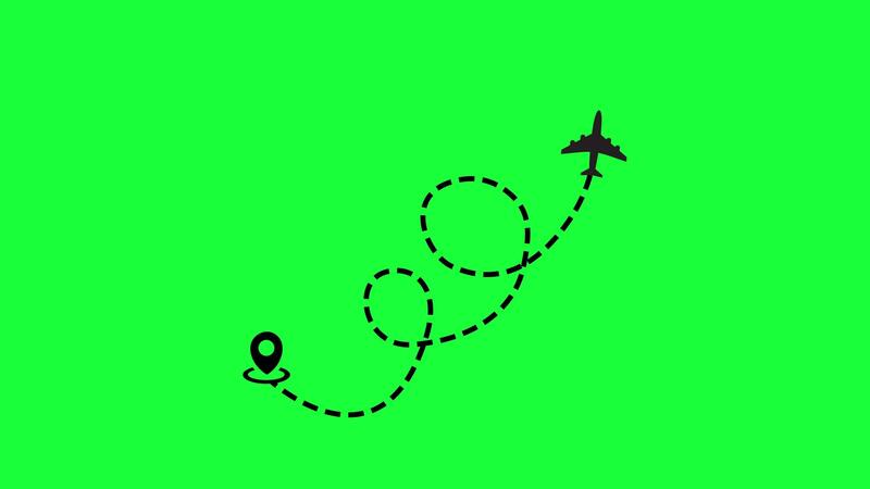 Path Animation of an airplane and a dotted flight line on a chroma key background Free Video