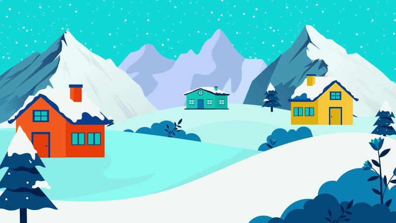 Winter snow scene background animation loop with snowflakes falling seamless motion graphics Free Video