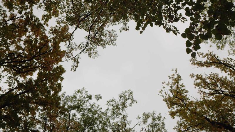 Looking up in the park to the crowns of the trees in the autumn. Tranquil natural background with trees moving in the wind. Pro Video