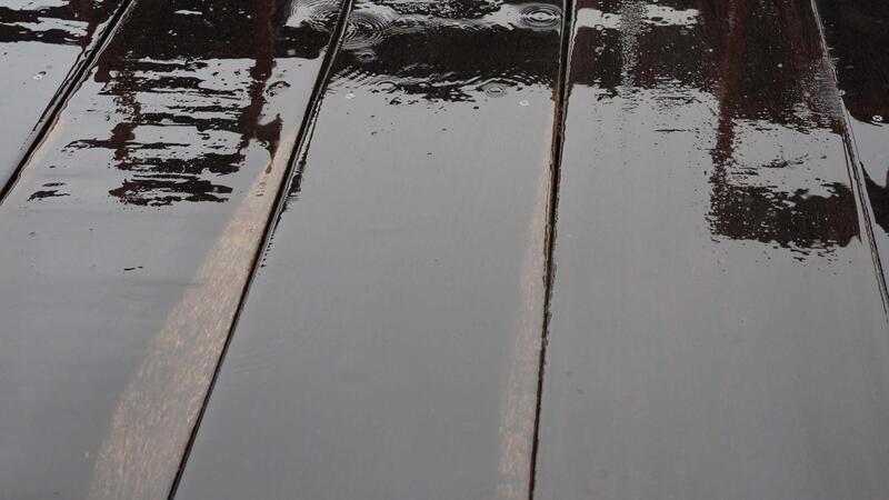 Close-up View of Reflective Wet Wood Surface with Water Droplets and Natural Light Creating an Aesthetic Texture and Depth in Modern Design Free Video