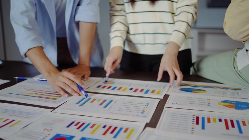Close up hands of asian young business professionals engage in a dynamic brainstorming session. They collaborate on strategies using charts and papers. showcasing teamwork. agenda or charts paper Pro Video