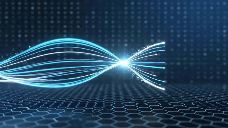 Futuristic Data Stream Visualization with Glowing Lines and Hexagonal Grid. Pro Video