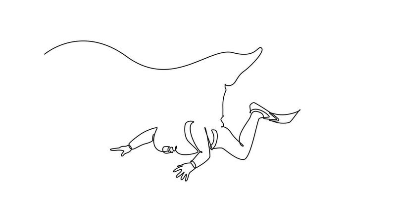 Animated self drawing of continuous line draw man scuba diver is floating underwater with a tank and fins, pointing the way for exploration, fluid motion and adventure. Full length one line animation Pro Video