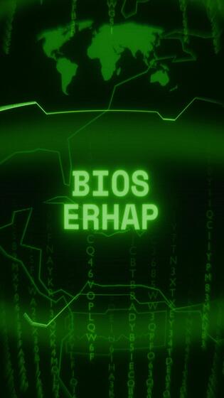 Old green Vertical Retro CRT screen showing text BIOS ERROR appearing in random glitch and Haking style Free Video