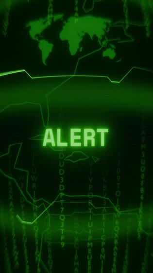 Old green Vertical Retro CRT screen showing text ALERT appearing in random glitch and Haking style Free Video