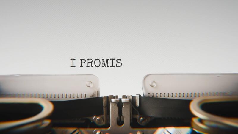 Old mechanical typewriter typing I Promise To Make It Right in a close up view, with metal letters striking the white paper. Pro Video