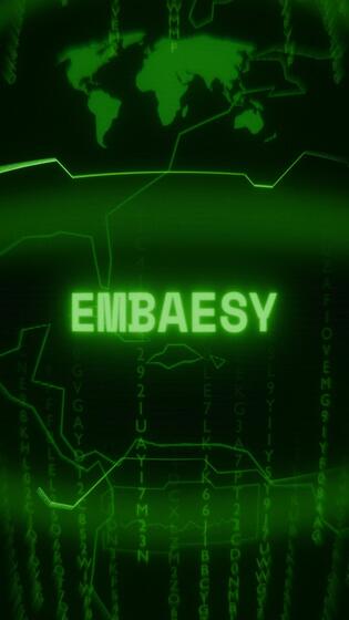 Old green Vertical Retro CRT screen showing text EMBASSY appearing in random glitch and Haking style Free Video