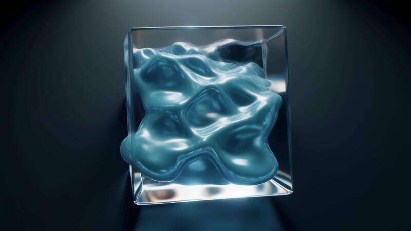 A translucent liquid mass shifts inside a reflective cube, bending light through smooth surfaces as rippling textures form an evolving sculpture of motion, transparency, and surreal digital fluidity.X Free Video