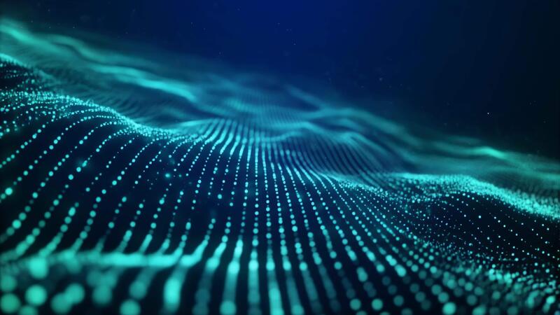 A shimmering expanse of digital waves flows across a glowing landscape, forming dynamic rolling surfaces of light that shift continuously, creating an immersive futuristic motion Free Video