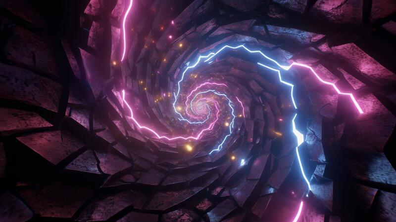 A spiraling vortex of radiant energy twists through cosmic textures, blending particles and currents into a tunnel that expands with surreal motion and transformation moving through abstract space.new Pro Video