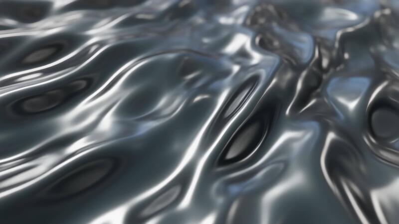 A metallic fluid surface moves in slow undulating motion, forming reflective folds and smooth shapes that shift continuously, creating an elegant futuristic texture Free Video