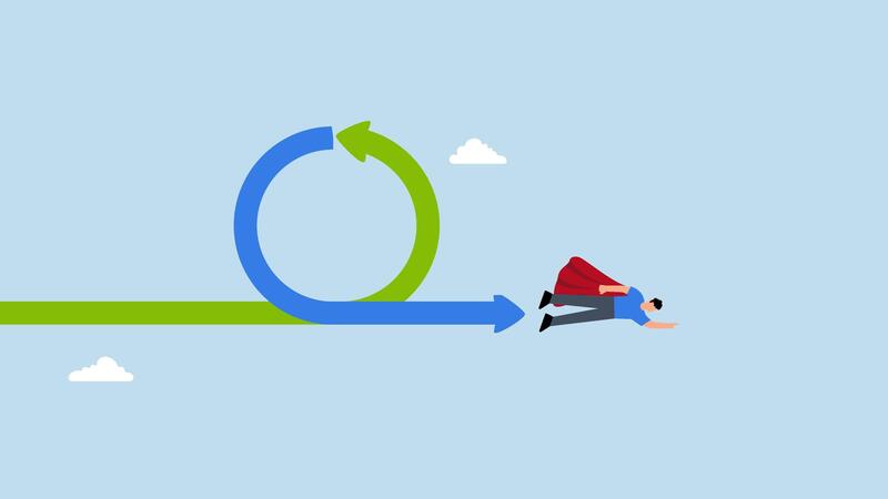 Agile methodology in project management or software development, businessman superhero fly with agile cycle, Pro Video