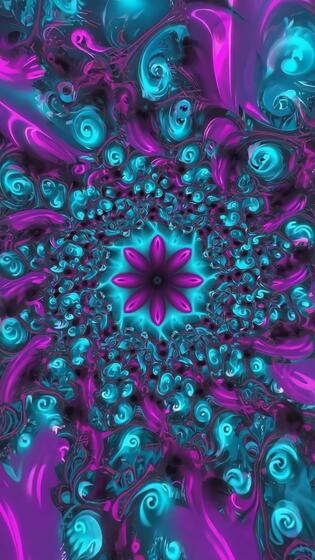 Mesmerizing fractal bloom pulsates with vibrant neon cyan and magenta energy, creating an abstract digital dreamscape. Free Video