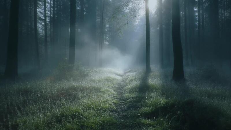 Mystical fog drifting through a vibrant forest path, wrapping towering trees in soft ethereal haze and creating an enchanting atmospheric scene filled with depth, serenity, and natural magic Free Video