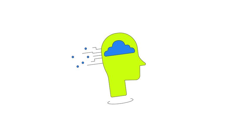Digital data cloud in human head silhouette 2D cartoon object animation. Tech intelligence. Upload download mind with connecting circuits animated flat colorful item 4K isolated on white Pro Video