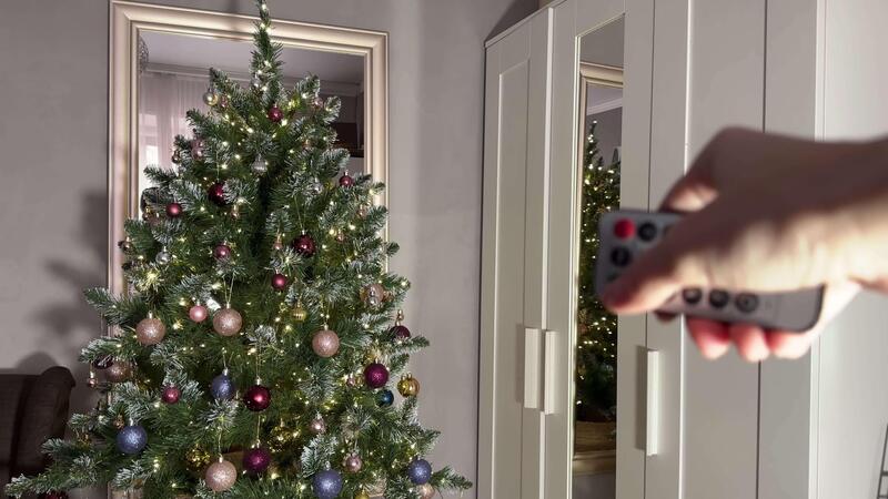Remote controlled Christmas tree lights turning on and sparkling with festive flashing patterns Pro Video