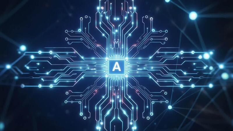 Abstract AI neural network connection grid in a digital futuristic network Free Video