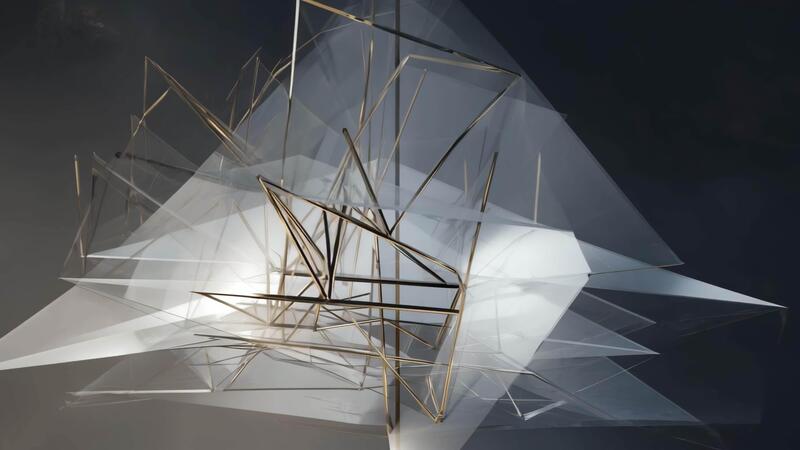 Abstract structure with transparent planes and metal framework on dark background art piece Free Video