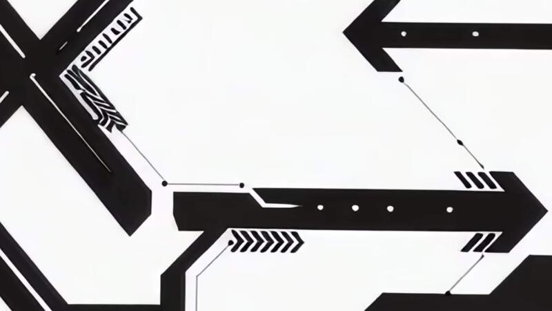 Bold black and white animated arrows in a technical, angular style, symbolizing data flow, process direction, business strategy, connection, and abstract industrial movement. Free Video