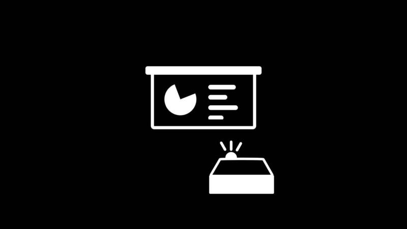 A white silhouette of a projector displaying a graph or chart onto a screen, representing data visualization, business presentations, analytical reporting, or educational content delivery. Free Video
