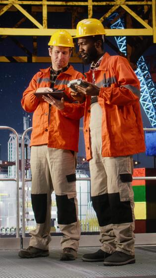 Vertical Colleagues using drone to collect data for offshore platform evaluation, inspection and environmental monitoring to enhance safety and efficiency in petroleum extraction. Camera A. Pro Video