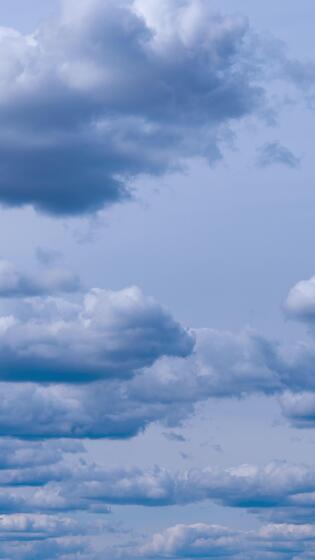 Dull grey horizon with multiple cumulus clouds. Cloudscape formation before the rain. Timelapse. Low angle view. Vertical Pro Video