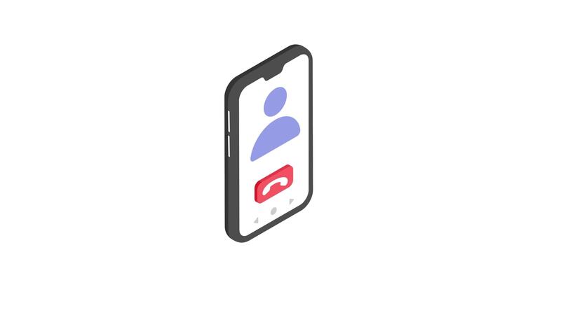 Smartphone icon animation showing an incoming call with a red decline button on display Pro Video