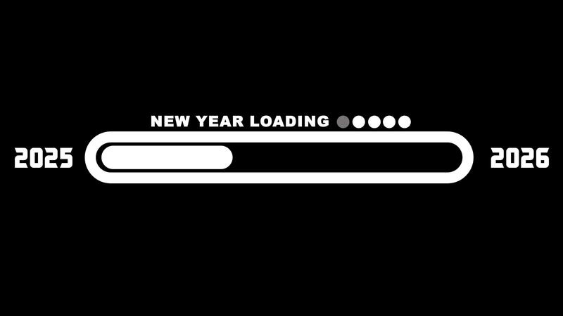 New Year 2026 Loading Bar Animation Alpha channel Countdown Transition from 2025 to 2026 with Happy New Year 2026 Text Reveal Modern Progress Bar for Year Change Ideal for Greetings Digital Content Free Video