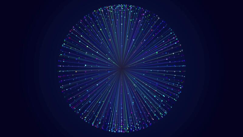 Radiant digital sphere with glowing lines stretching. Tiny colorful particles shimmer. For sci-fi, technology, fantasy, and abstract design concepts. Seamless loop 4K Pro Video