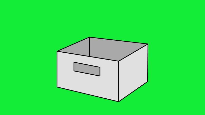 Collapsible fabric storage cube. Open interior with empty space. Shelf or closet organization context. Front handle slot clearly visible. Shown in a calm structure-fold motion pass. Pro Video