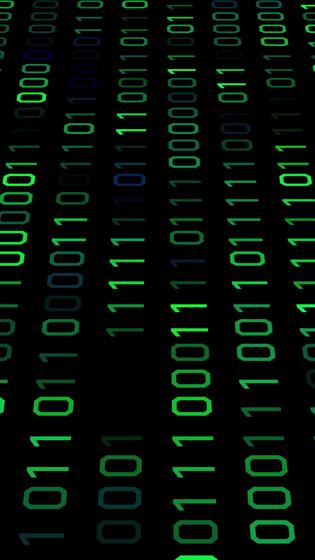 Digital Binary Code Flowing Down Vertical Screen Display. Pro Video