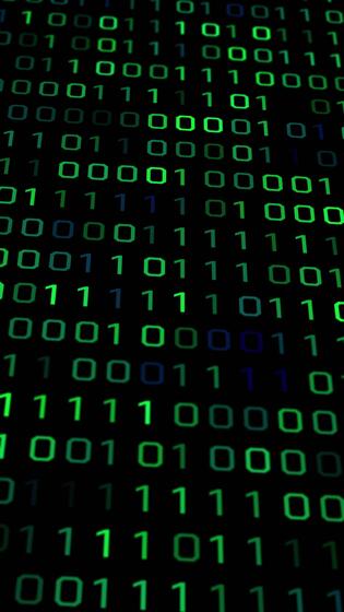 Digital Binary Code Flowing Across Vertical Screen. Pro Video