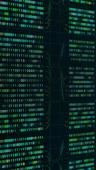 Digital Binary Code Flowing on Vertical Screen Display. Pro Video