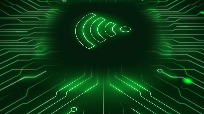 Digital Network Icon with Wave Signal on Circuit Board. Pro Video